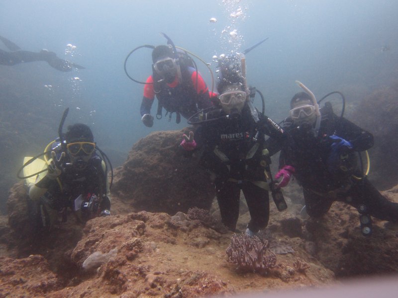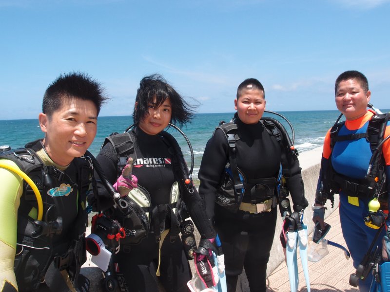 オープン・ウォーター・ダイバー・コース、最終日のジェニファーさんとあつしさん。 そして、ファンダイビング2日目のみずえさんです。