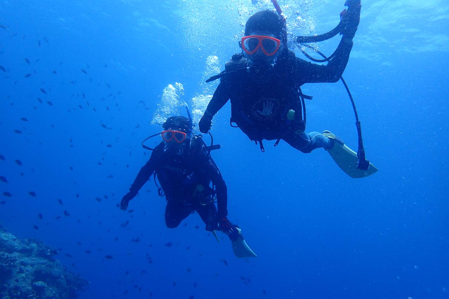 2025.11.17 慶良間ボート AOWコース&付き添いファン 初めましてのみちかさんとみずきさん。みずきさんのAOWコースと付き添いご参加のみちかさんと、慶良間へ~。 ライセンスを取ってからブランクありのみずきさんは緊張されていたようですが、みちかさんにも見守られ、しっかり3ダイブ講習してきました。 明日も続きです♪楽しみです。