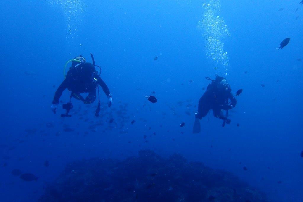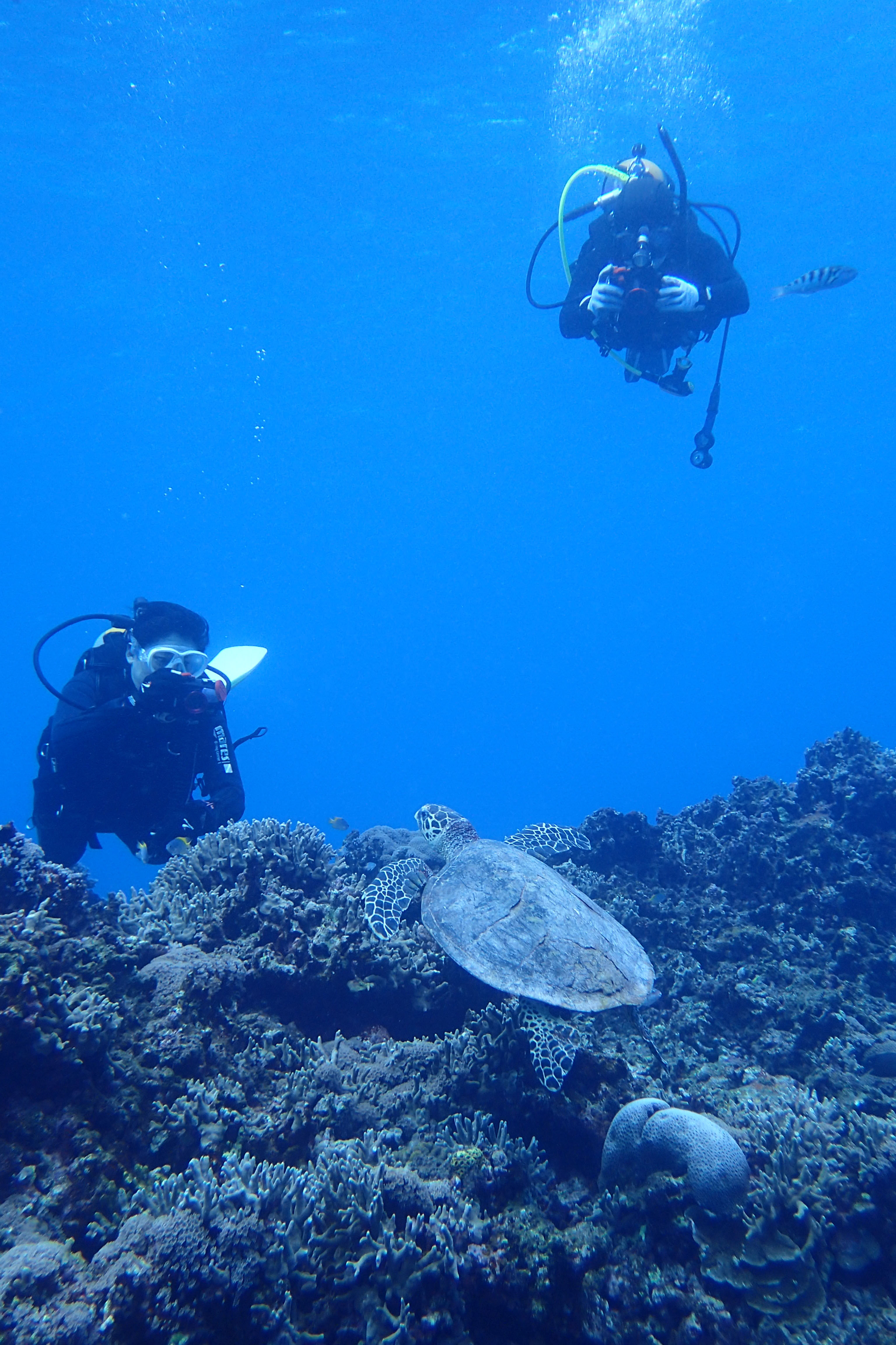 水慣れスノーケルは、いつの間にかスキンダイビングになってるし(笑) もちろん、ダイビングもすいすいばっちりでした。まるでみんなファンダイビングみたい。上手でしたね~。そういえば、まさこさん&よしかずさんもここで体験ダイビングしましたね。11年前ですか!!!海風Tシャツを着て、いろいろサポートしてくれましたm(_ _)m