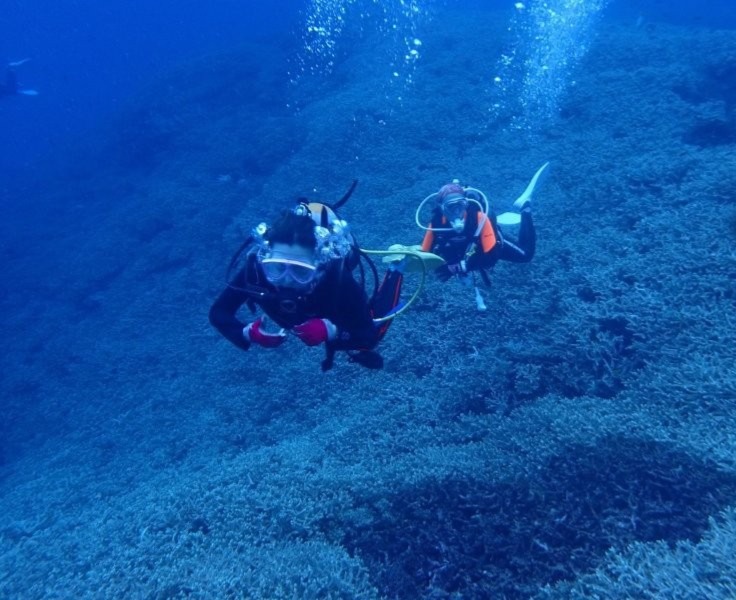 初めましてのみちかさんとみずきさん。みずきさんのAOWコースと付き添いご参加のみちかさんと、慶良間へ~。