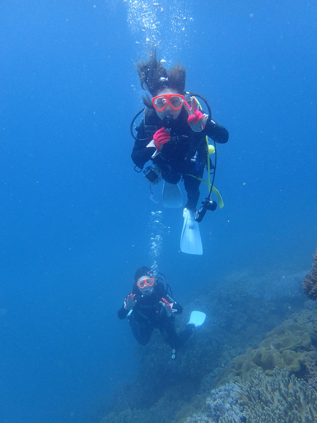 いつも可愛いみおちゃんと素敵なひろこさん親子ダイバー。これからも仲良くダイビングを続けてくださいね。そして、また、一緒に潜りましょう。楽しみにお待ちしております(^^)/ みおちゃんが船酔いに勝てるよう応援してます!