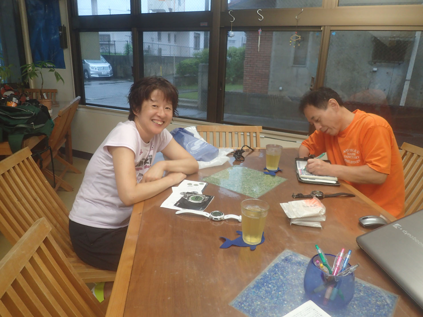 今年ダイバーになってすでに30本潜っているというかよこさん。子育て一段落して、ダイビング三昧!? 明るくて前向きで真面目でぐんぐん上達しているんですね! 今日は雨でしたが、かよこさんのおかげで明るく潜れました!