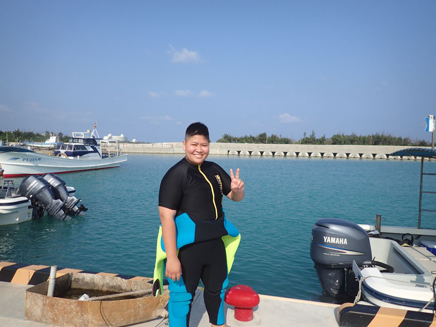 やっとはるかちゃんと一緒に潜れました! リクエストで大好きな万座ボートへ♪ 海況も回復して、お天気も良くて、ダイビング日和でした(^^)