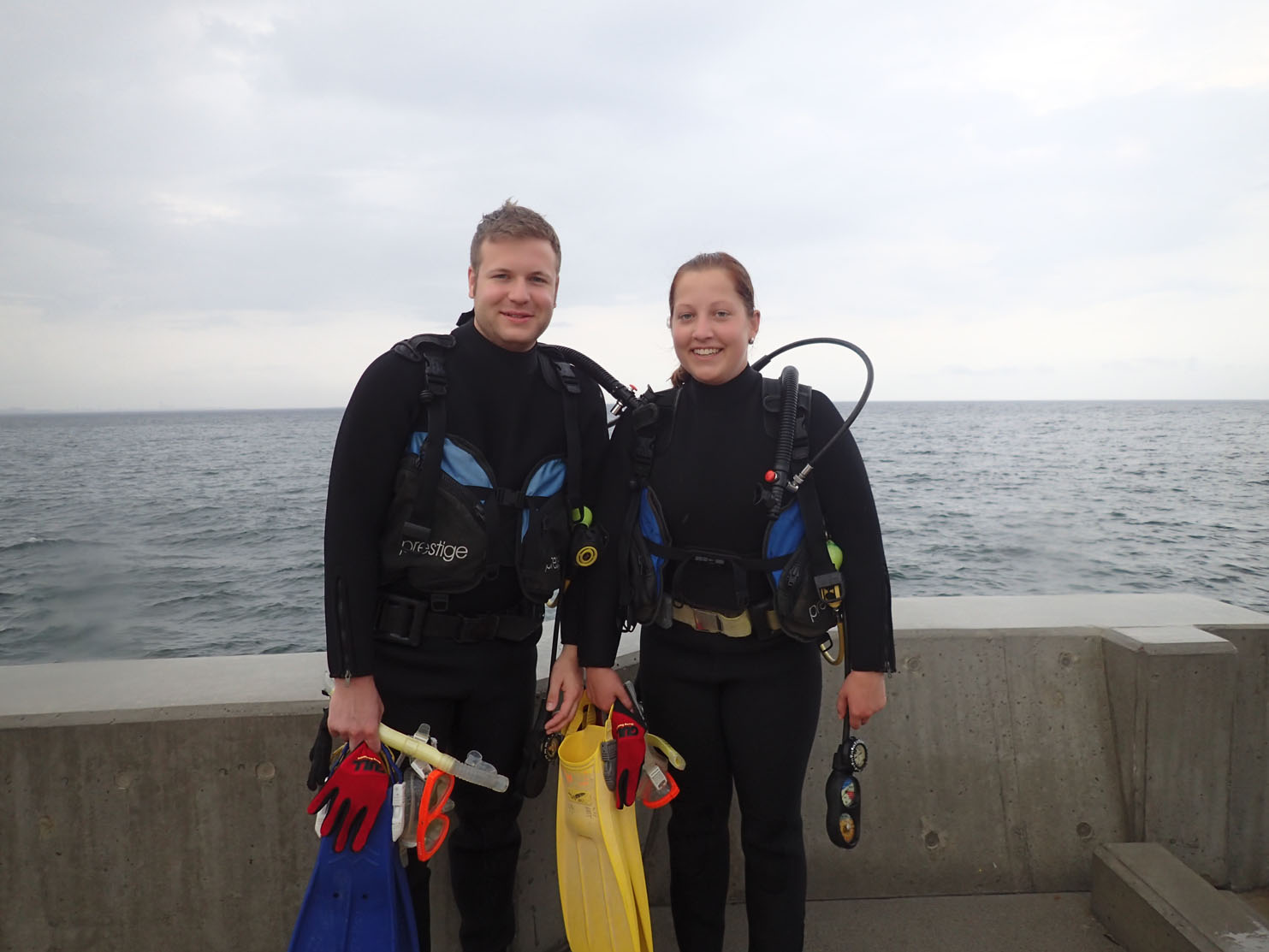 ジモーナさんとフローリアンさんのOWDコース。 2日目は海洋実習です♪ 雷雨の中向かっていましたが、到着すると晴れてきました(^^)