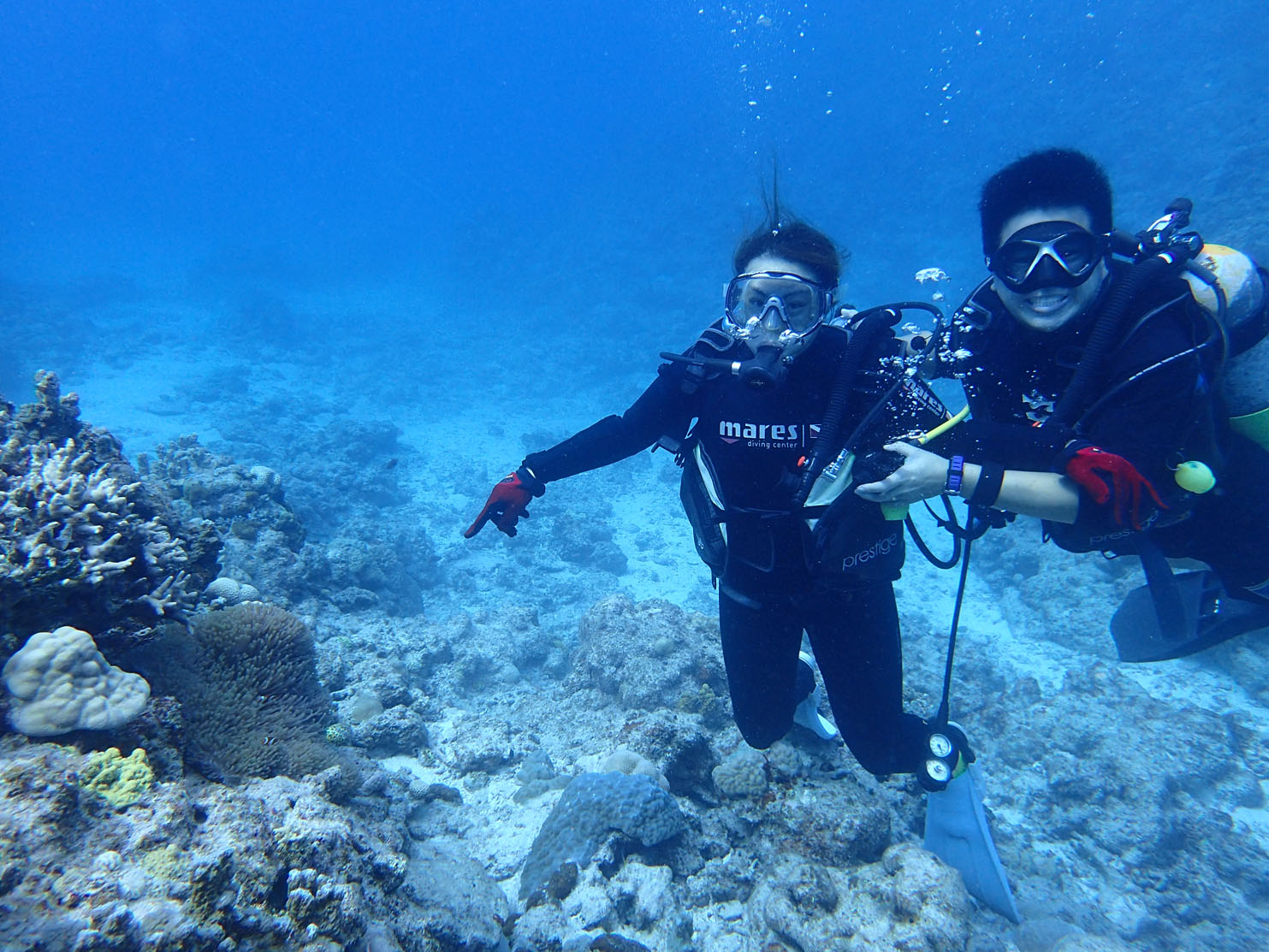 初心者ダイバーのジェーンさんをベテランダイバーのサビオさんが全面的にサポート。とっても仲睦まじいお二人でした(^^) 慶良間でのダイビング、とっても楽しかったそうですよ♪