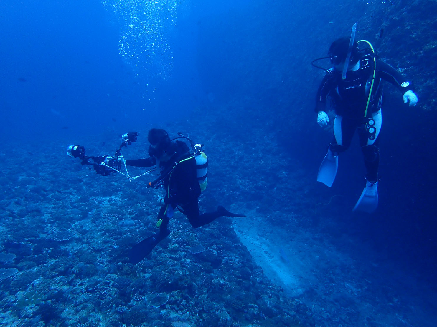 波はやや高かったのですが、海中は流れが穏やかで楽々移動できました。1ダイブ目でたっぷりギンガメ玉を楽しんで、後の2ダイブはギンガメ玉を横目で見つつ、筆ん崎めぐりをしてきました。 あれこれ群れや大物を見られました。お二人とも安定感抜群なので、のんびりと瀬をめぐれました~。