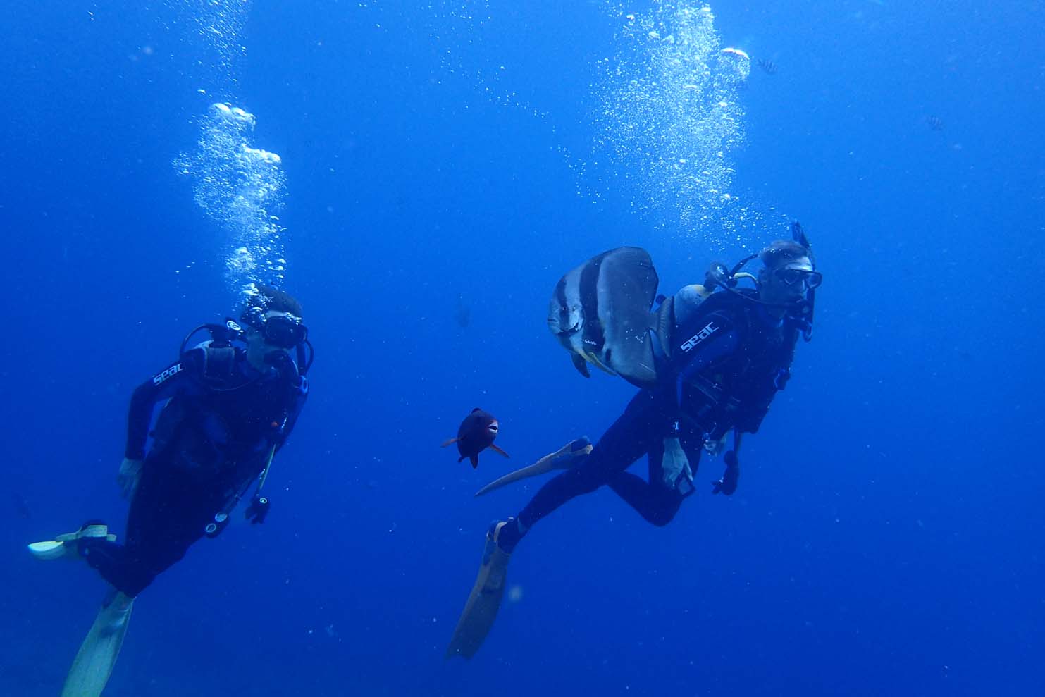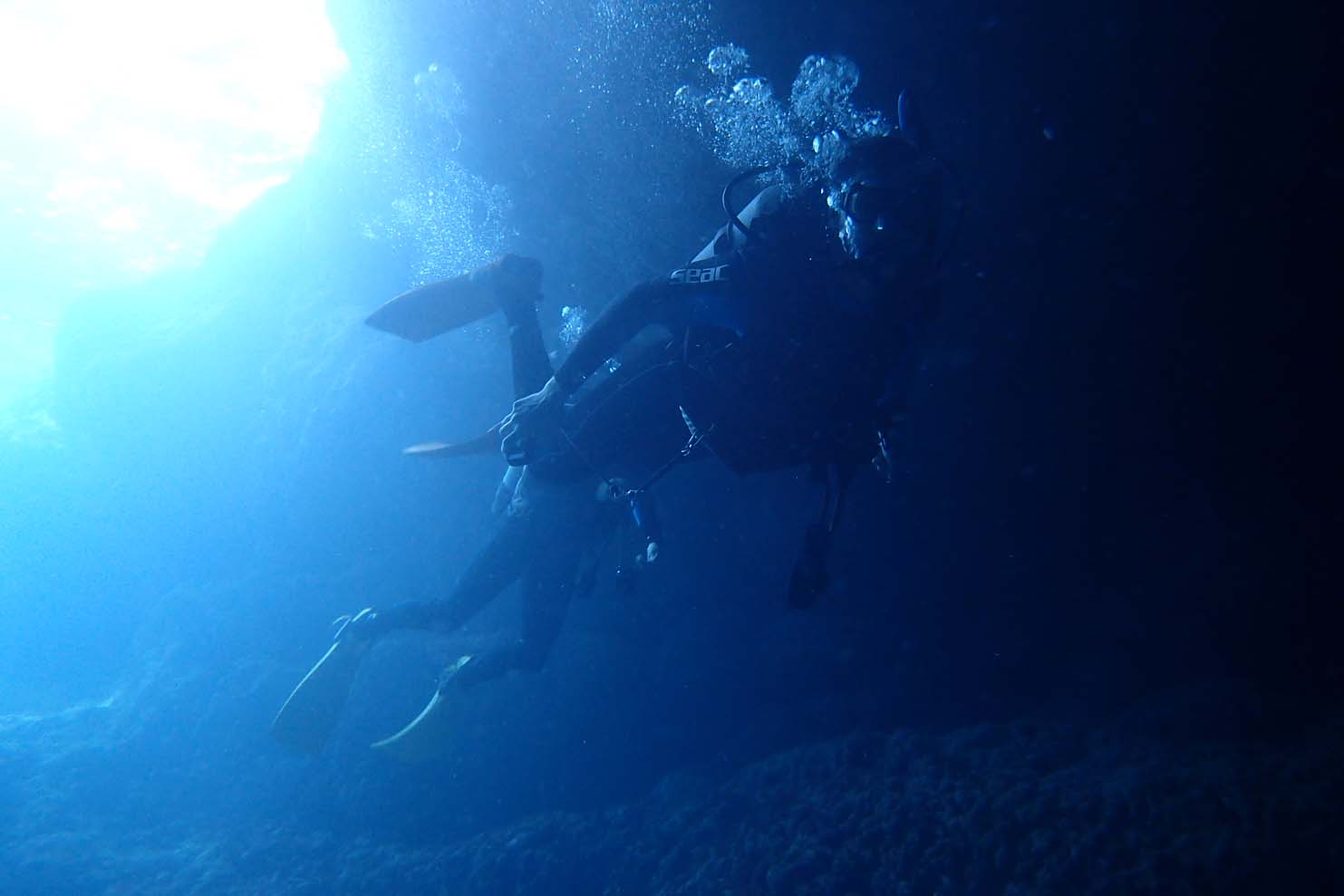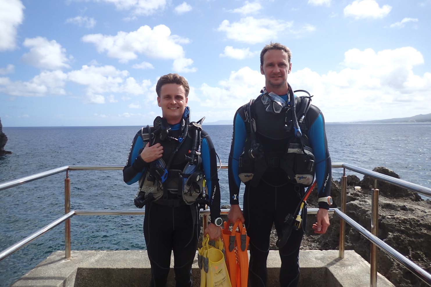 コペンハーゲンでライセンスを取って、初めてのファンビング。透明度も水温もぐぐっと高い沖縄の海を楽しんでいただきました。 青の洞窟より、ドロップオフの方が好みだったようです(^^)