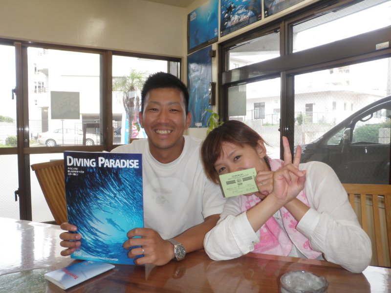 ダイバー誕生! 昨日のあつしさんに続いて、りえさんも本日ダイバーになりました!これでご夫婦だいばーず♪ 沖縄在住のうちにたくさん潜ってくださいね(^^) ステップアップしたり、ファンダイビングを楽しんだり、ダイビングのお楽しみはこれから!!! お二人でどっぷりとダイビングにはまってください。 また、一緒にもぐりましょう\(^^)/ そして、おこさんが10歳になったら、家族だいばーずになってくださいね~。 ツイート mixiチェック « シーズン到来! カリブから♪ »