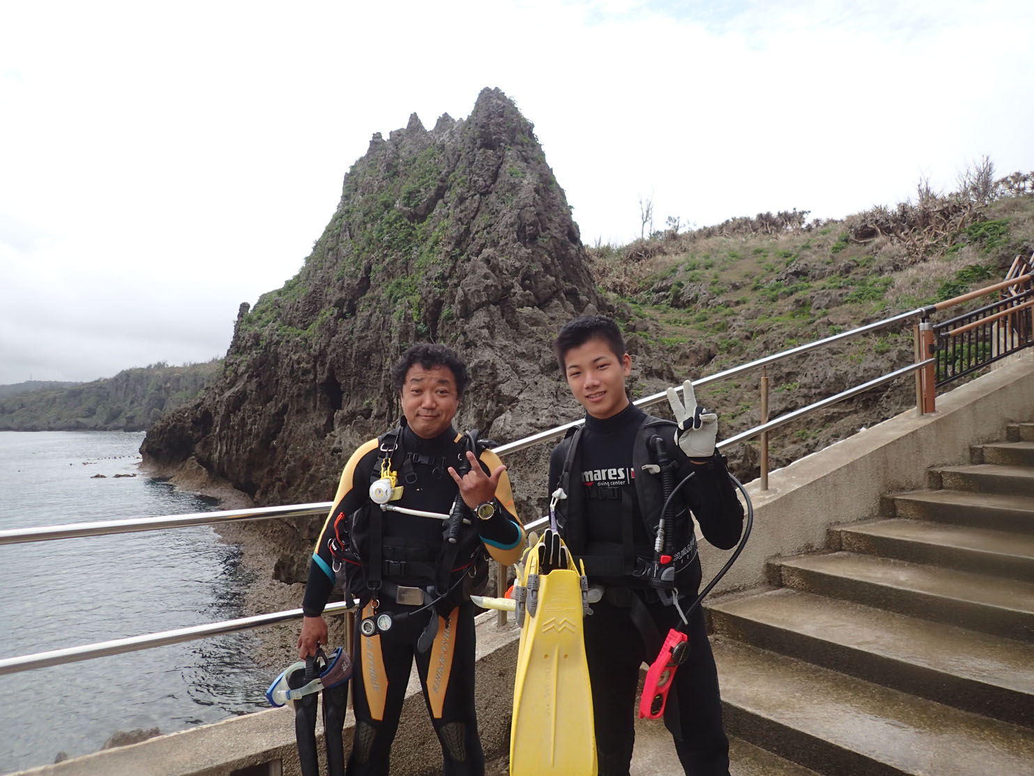 いつでもどこでも楽しいご夫妻。今日も海中でも船上でも陸上でも楽しく過ごしましたが、ダイビングの方も気に入っていただけたようです(^^) また行きたいって~♪