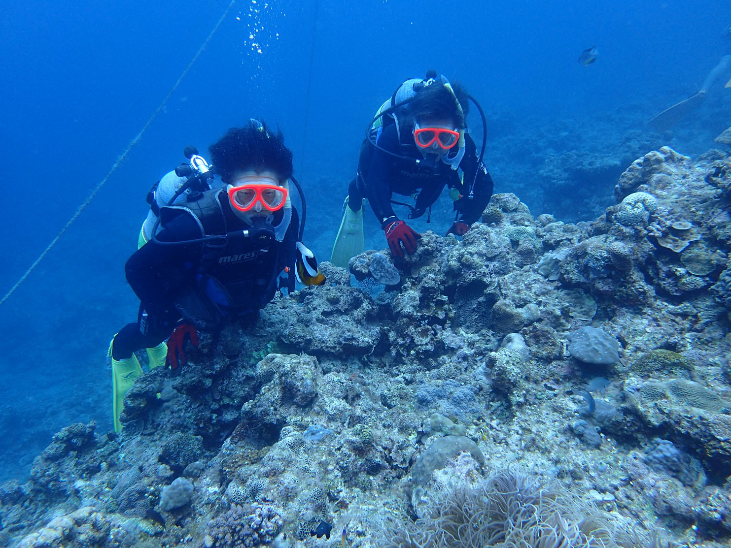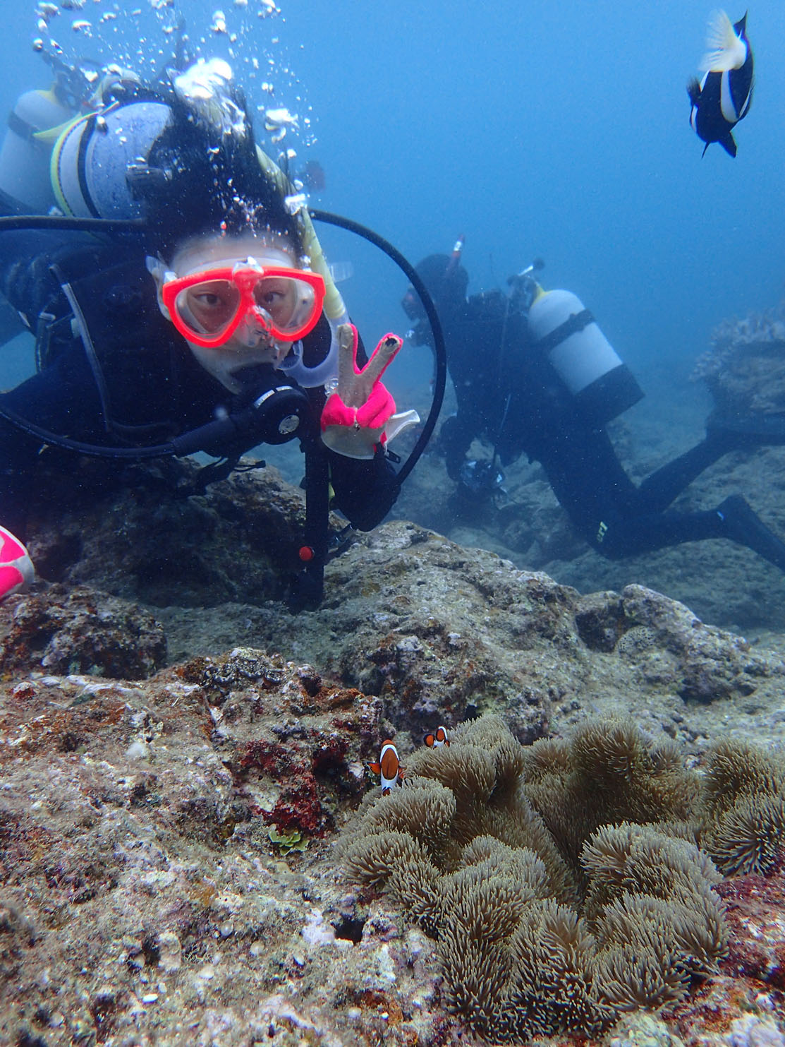 ブランクがあったので、器材を見たときは(?-?)になっていたお二人ですが、海中ではすぐに慣れて楽しそうにキョロキョロといろんな生物を眺められていました。 洞窟の青もしっかり見てきましたよ。