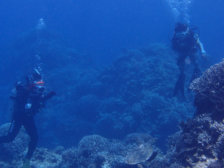 3日目のみのるさんと、お久しぶりのひろみさん。慶良間へ行ってきました。