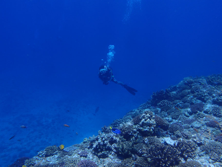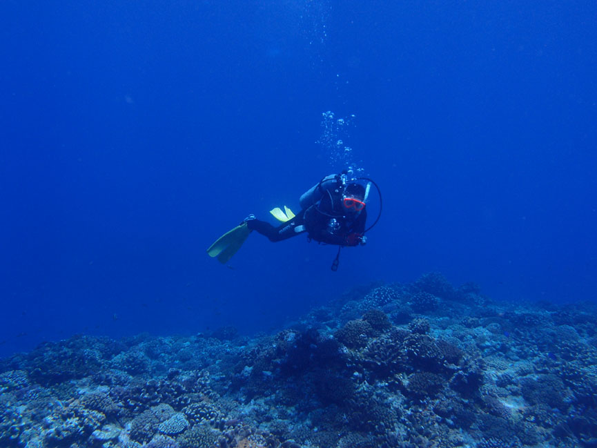 ひろみさんは今日ものんびり2ダイブ。日頃のストレスをひろーい海にしっかり流してもらえたかな。海外へ行くことが多かったようですが、沖縄の海がこんなに綺麗なら、海外に行かなくてもいいかなとうれしいお言葉をいただきました。ぜひまたいらしてください。