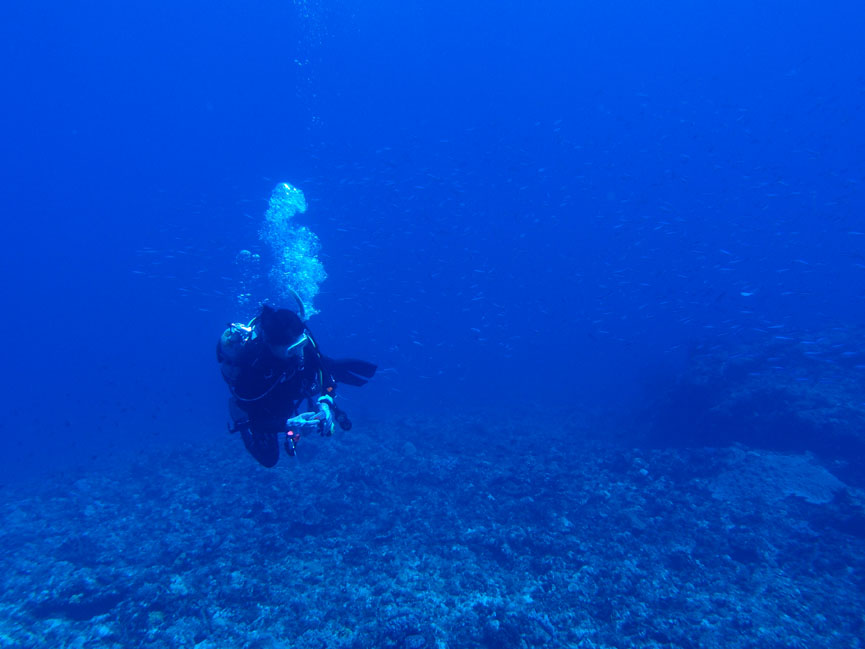 今日はギンガメ玉いマグロ軍団、グルクン河にキビナゴ祭り。キラキラな海でした。 寒がりなくみこさんもさすがに寒がらない夏の海です。
