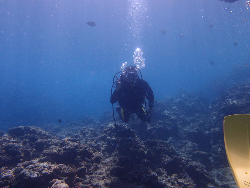 最初はなかなか海中になじめないお二人でしたが、2ダイブ目にはすっかり慣れて洞窟も楽しんできました。人もいっぱいでしたが、サカナもいっぱい。階段は大変だったけど、楽しんでいただけたようです。