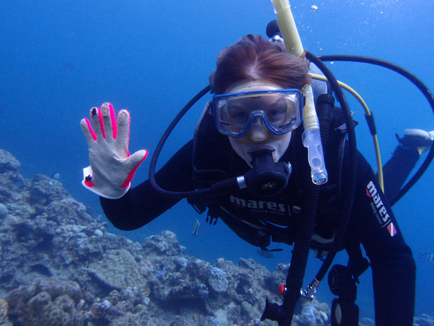 最初は怖かったけれど、徐々に慣れて楽しくなってきたそうです。これからは、ダイビングのために働いて、またダイビングして、ダイビングのために働いて、またダイビングして、、、と言うくらいはまったみたいです(^^)