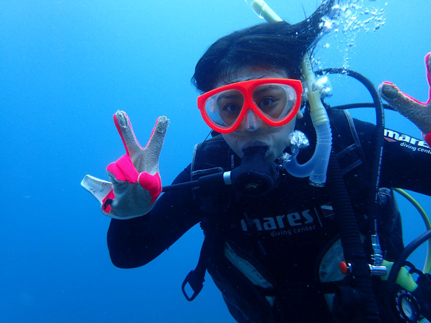 ずーっとダイビングをやってみたかったというあいさん。ぜひぜひライセンスを取って、もっともっと海中を楽しみましょう!また、お待ちしておりますo(^^)o