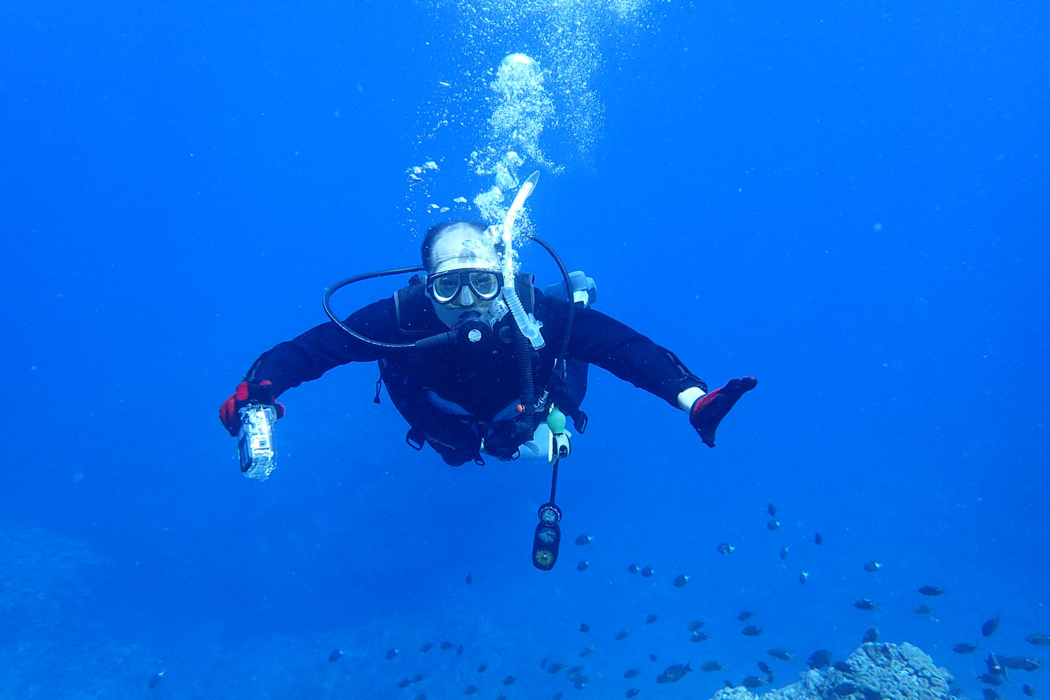 5年くらい前にライセンスを取ってその後初めてのダイビングということでしたが、とても上手でした! せっかくご近所なのですから、どんどん潜りに行きましょうね~。沖縄在住のうちに、ぜひステップアップもしてください。