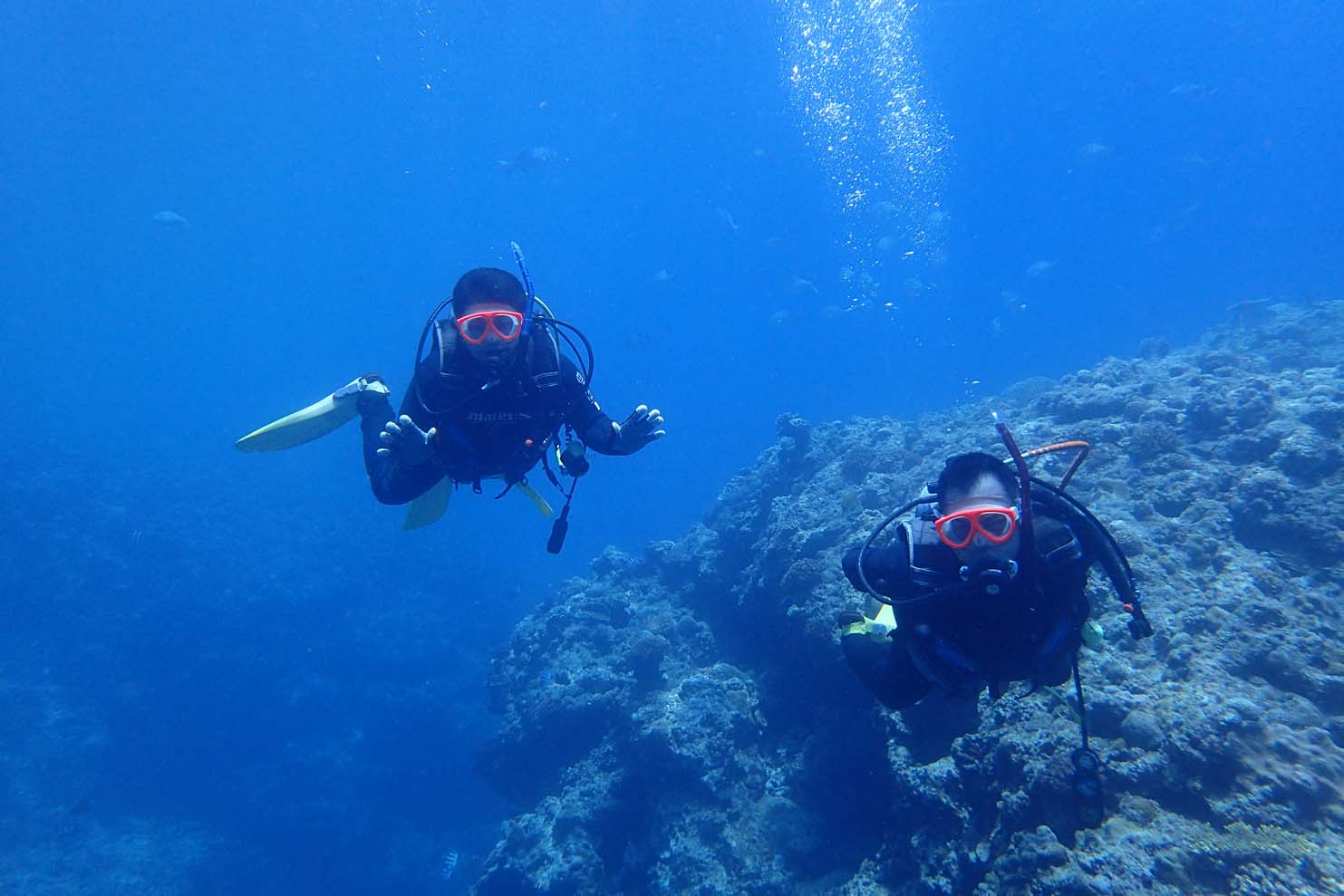 連続3日間のあきのりさん。今日もどんどん上手になって中世浮力もバッチリ。まわりを見る余裕もたっぷりで、楽しく講習できました(^^♪ ゆういちさんも2日空いていますが、しっかり覚えていましたね。今日も魚探しに夢中です(笑)