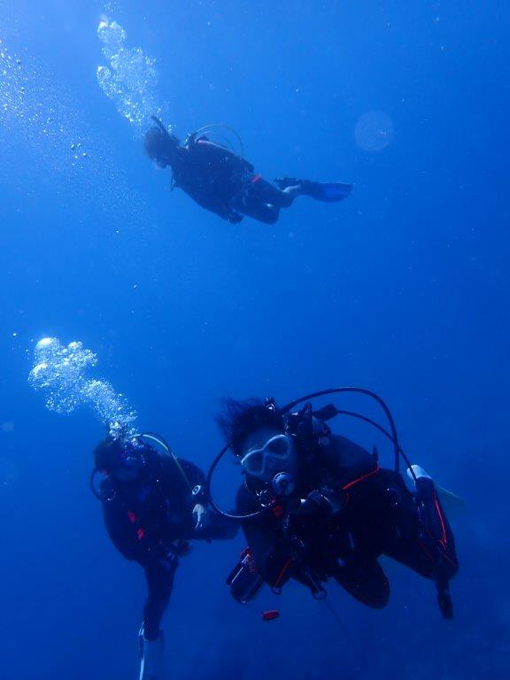2024.10.09 慶良間ボート ファンダイビング 3日目のとみえさんと、2日目のみきちゃんとなほちゃんと、今日も慶良間です♪ 北風でしけてるけど、晴れてのんびりと気持ちよく潜れました(^^♪ みきちゃん、なほちゃん、2日間ありがとう。また、お待ちしてますよ~q(^^)p とみえさんは明日も潜ります♪