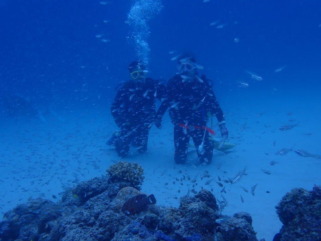 2023.10.06 山田ボート ファンダイビング 8月にダイバーになったじゅんこさん&ひでゆきさん。初ファンダイビングです(^^♪ 真栄田岬ボートご希望でしたが、本日は波高く山田ポイントへ。 それでも、サカナに囲まれてしっかり潜ってきました。 明日は慶良間予定です(^^♪