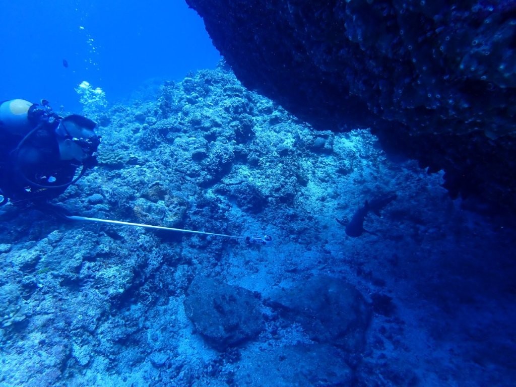 2025.07.28 チービシボート ファンダイビング 昨日からのみつえさんとしげるさん、そして元ご近所だいばー・ひでとさんからのご紹介でこうすけさんと、今日もチービシへ。 復活した台風8号に翻弄されつつも、晴れた海を楽しんできました。 こうすけさんは久しぶりのダイビングで緊張されてましたが、最初だけでしたね。また、潜りに来てくださいね~。みつえさんとしげるさんは、次回もよろしくお願いします(^^)